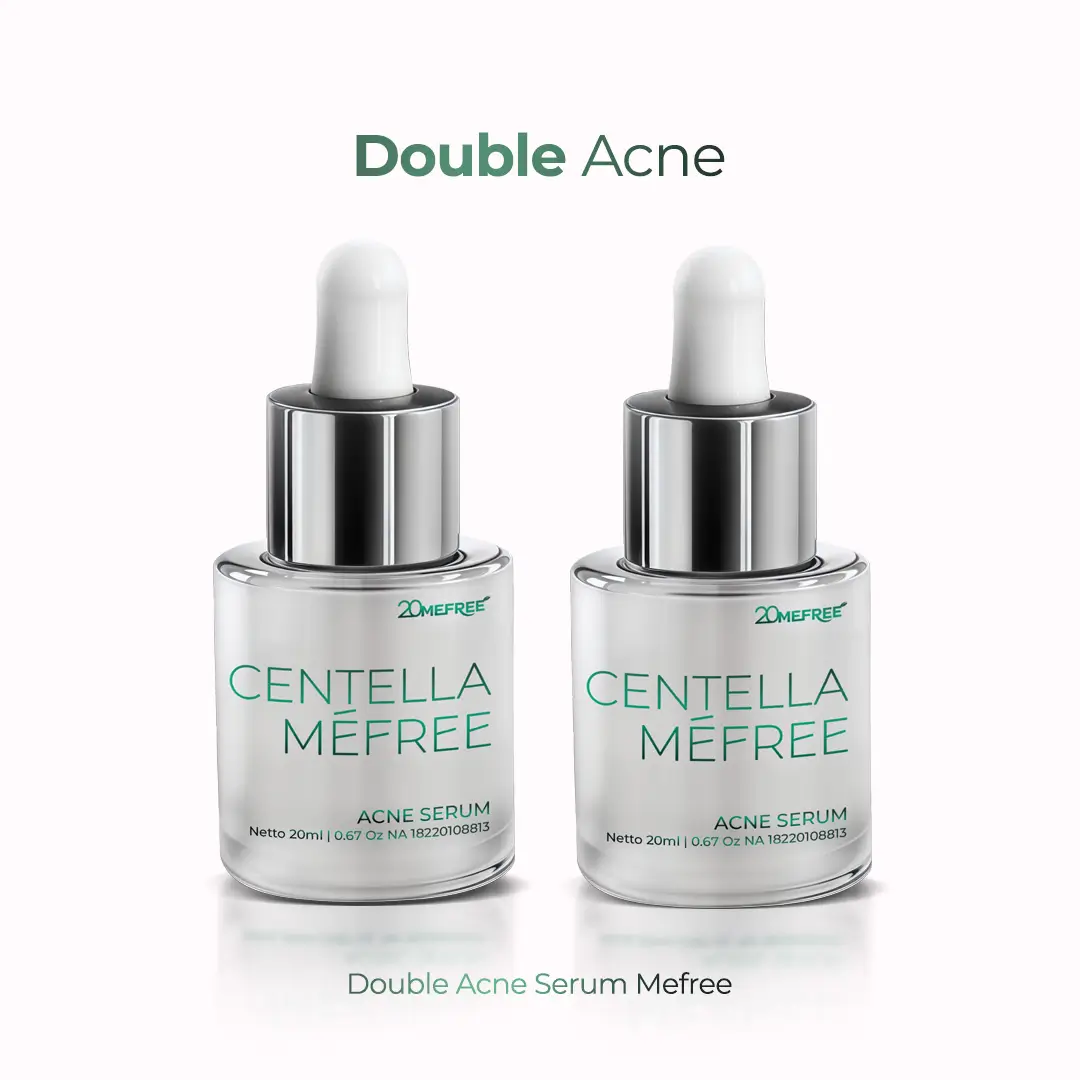 Double Acne Serum Mefree berisi dua Centella Acne Serum yang bekerja melawan jerawat, menenangkan peradangan, dan menjaga kulit tetap bersih, halus, serta sehat setiap hari.