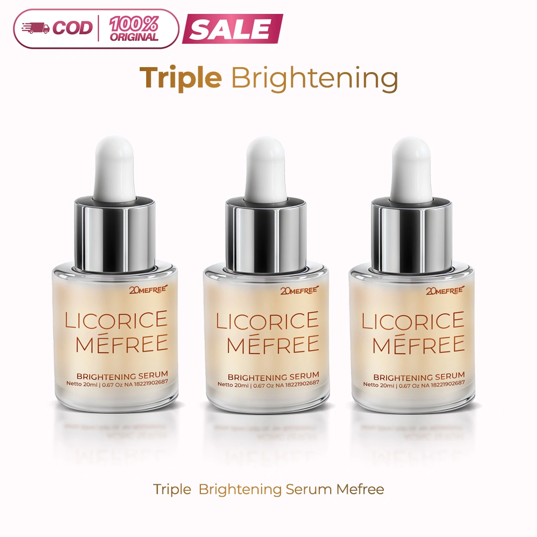 Package Triple Serum Brightening 20Mefree adalah paket serum pencerah lengkap yang membantu mencerahkan kulit secara merata, menyamarkan noda gelap atau bintik hitam, serta meratakan warna kulit untuk tampilan wajah lebih cerah dan bercahaya. Dengan tiga botol serum Brightening, paket ini memberikan perawatan intensif untuk kulit kusam dan menjadikan kulit tampak lebih sehat dan bercahaya secara maksimal.